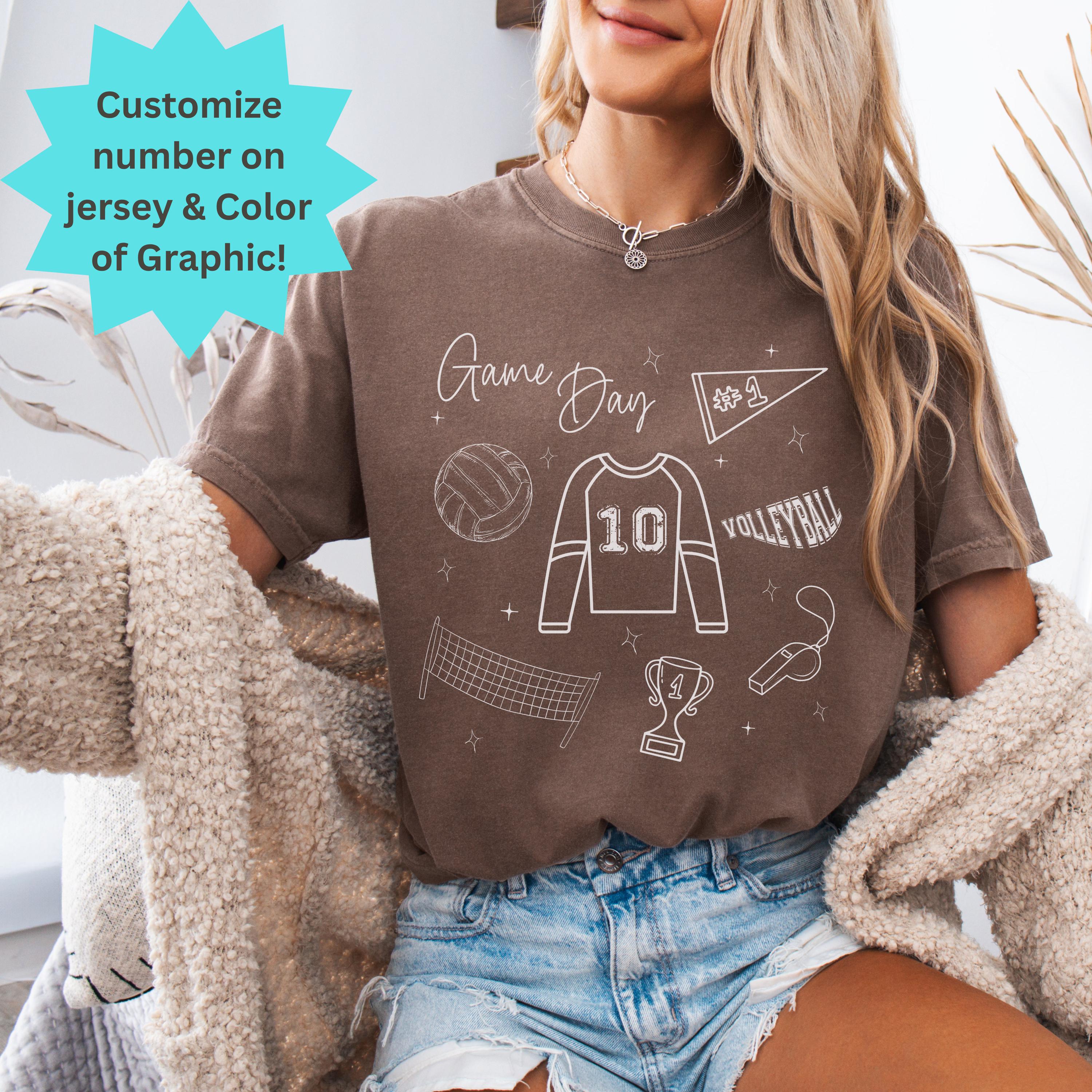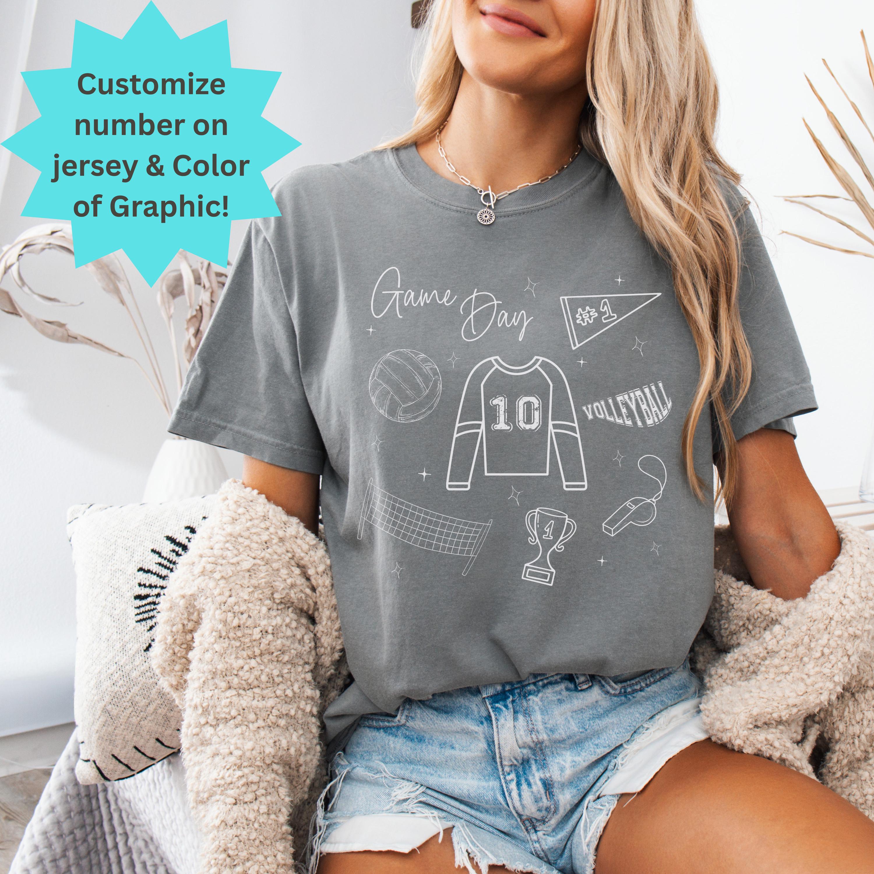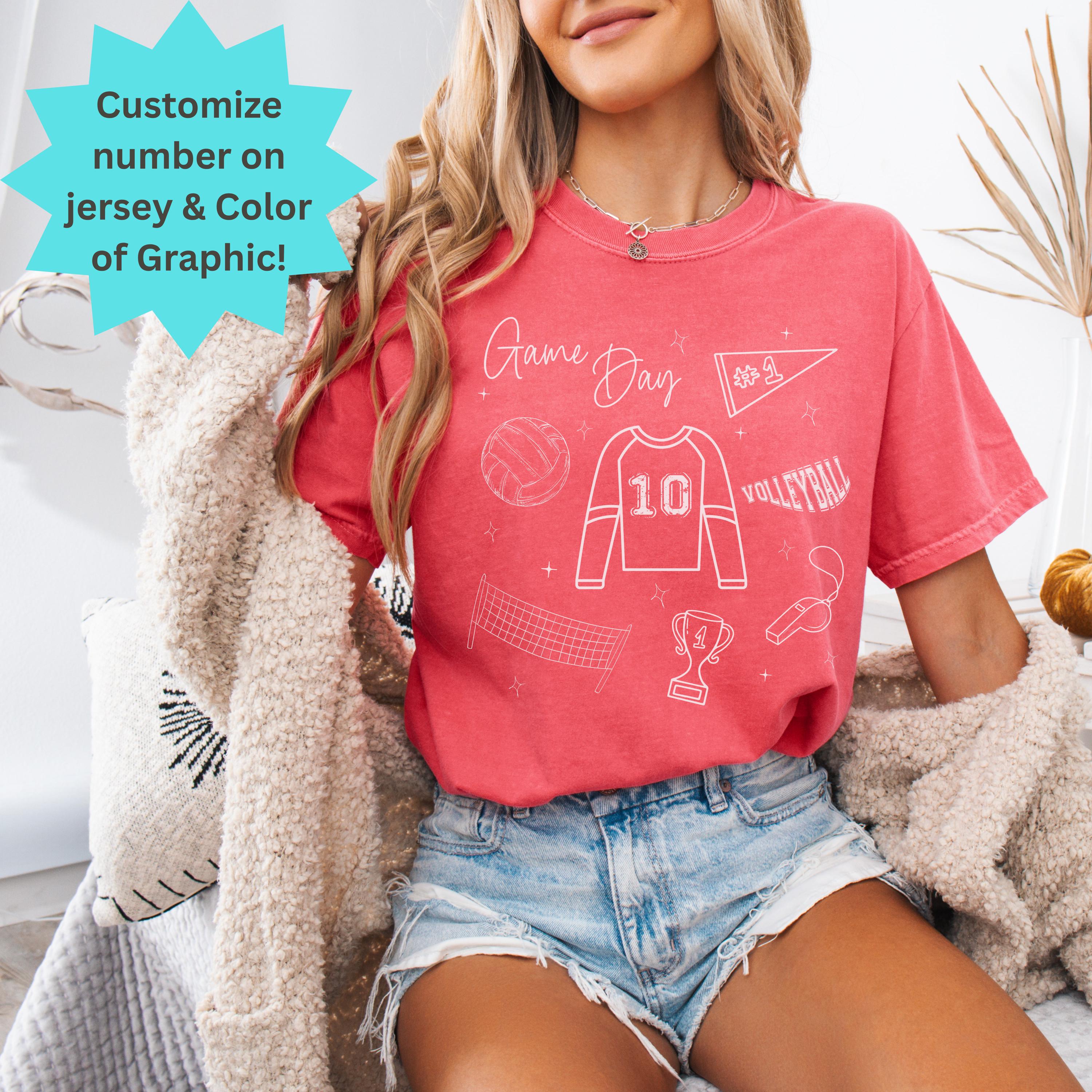 * Premium 100% Comfort Colors cotton comfort t-shirt with customizable volleyball Gameday design