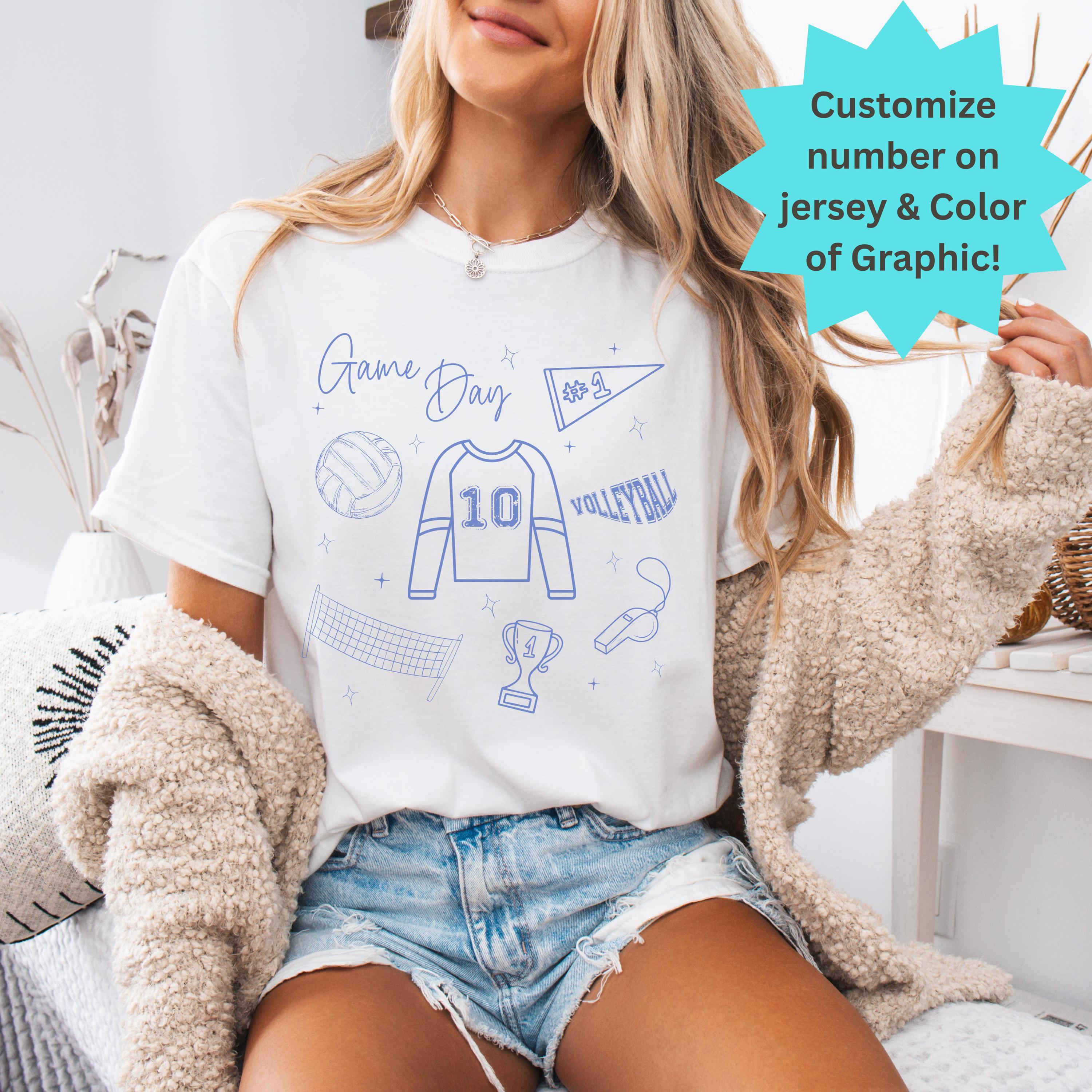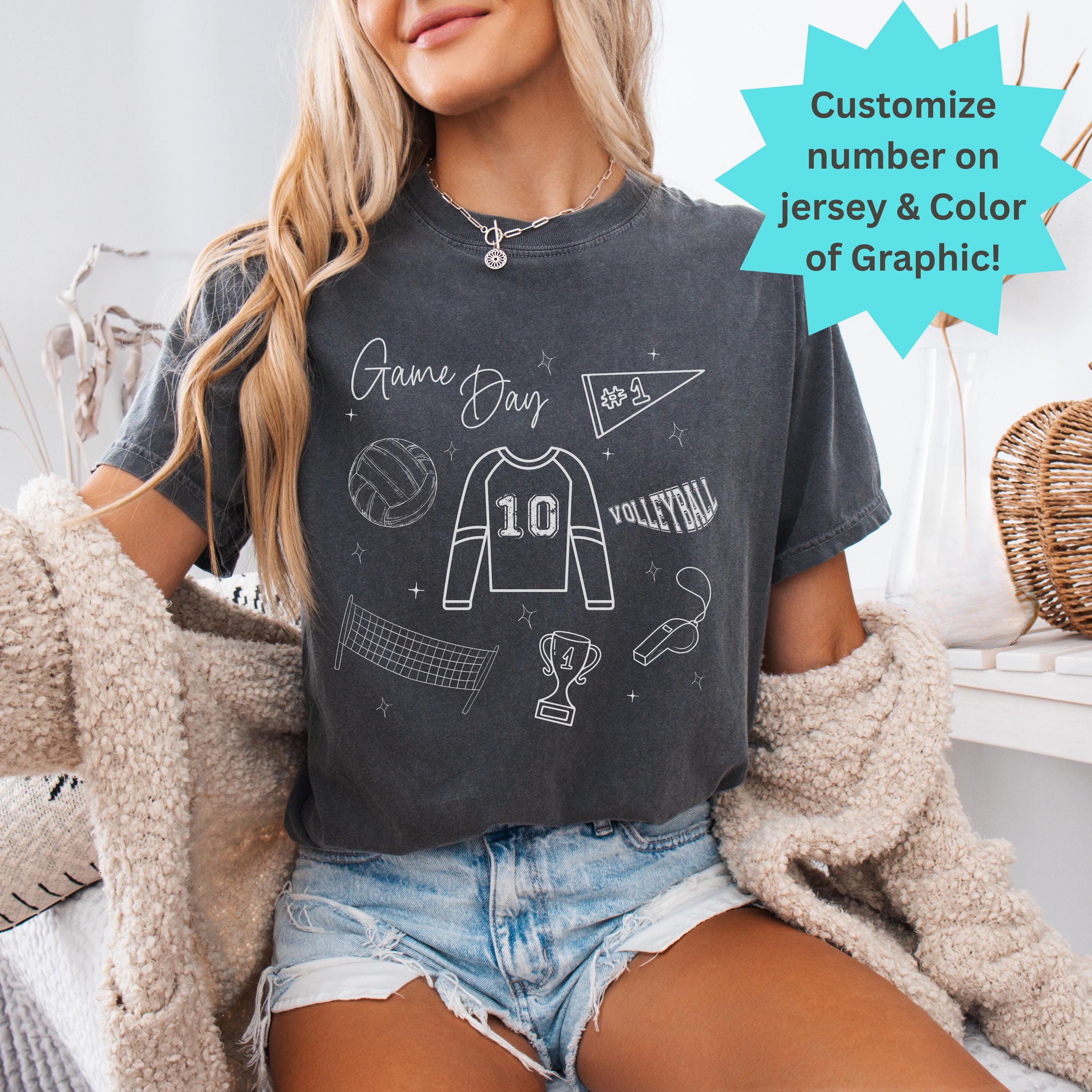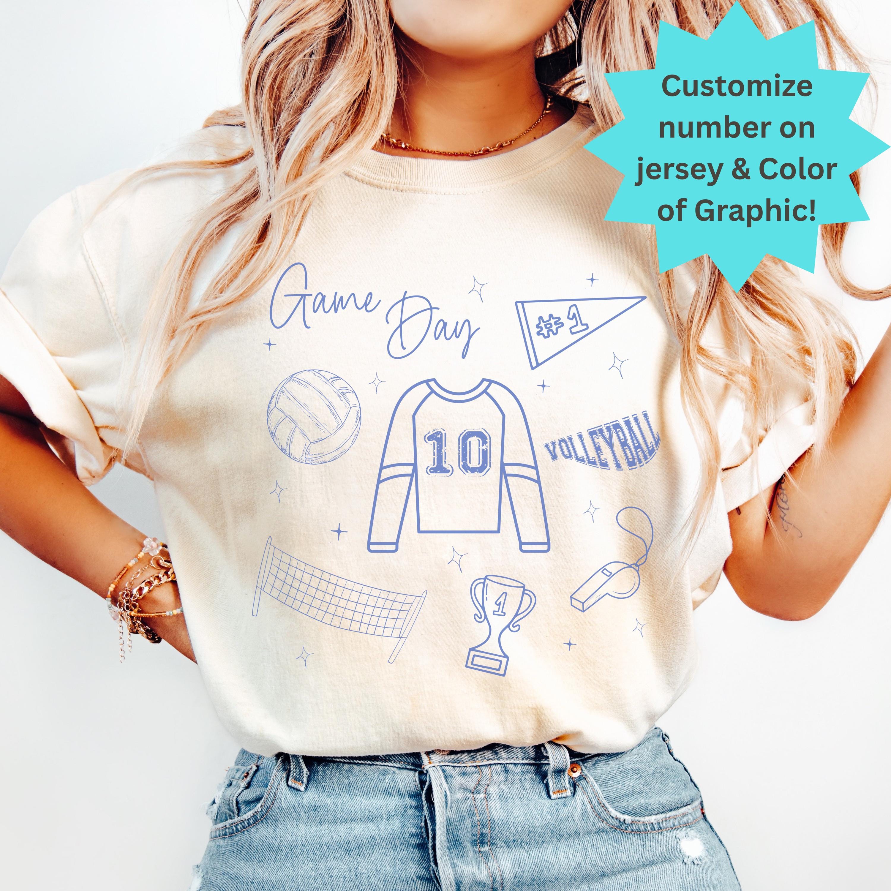 * Premium 100% Comfort Colors cotton comfort t-shirt with customizable volleyball Gameday design