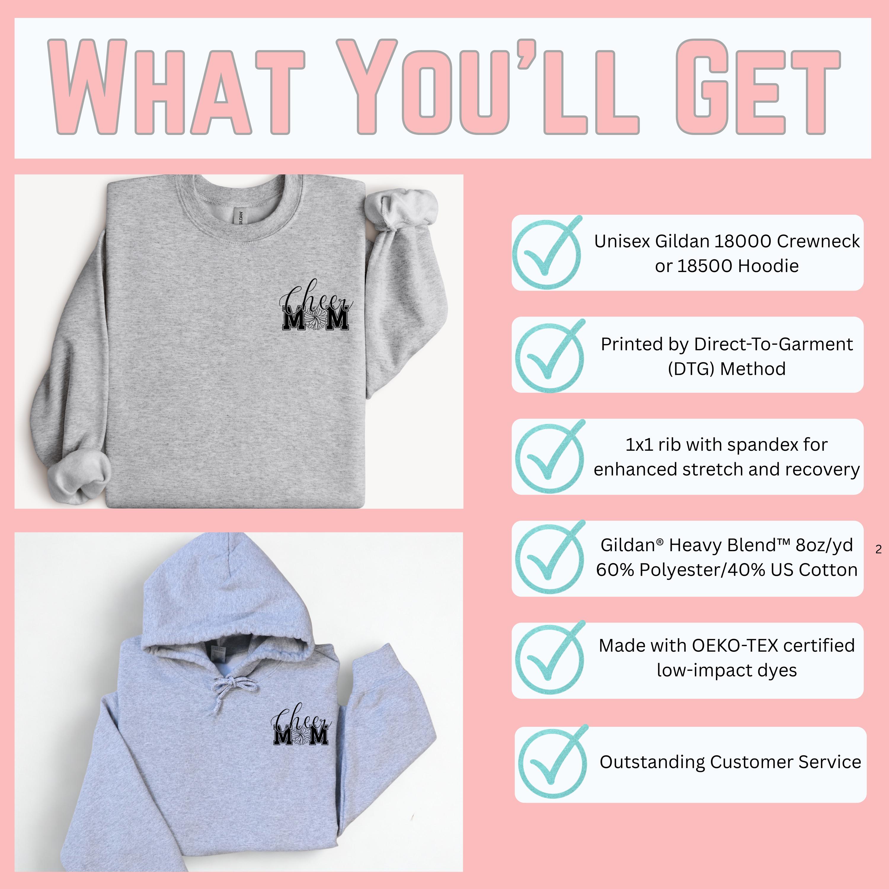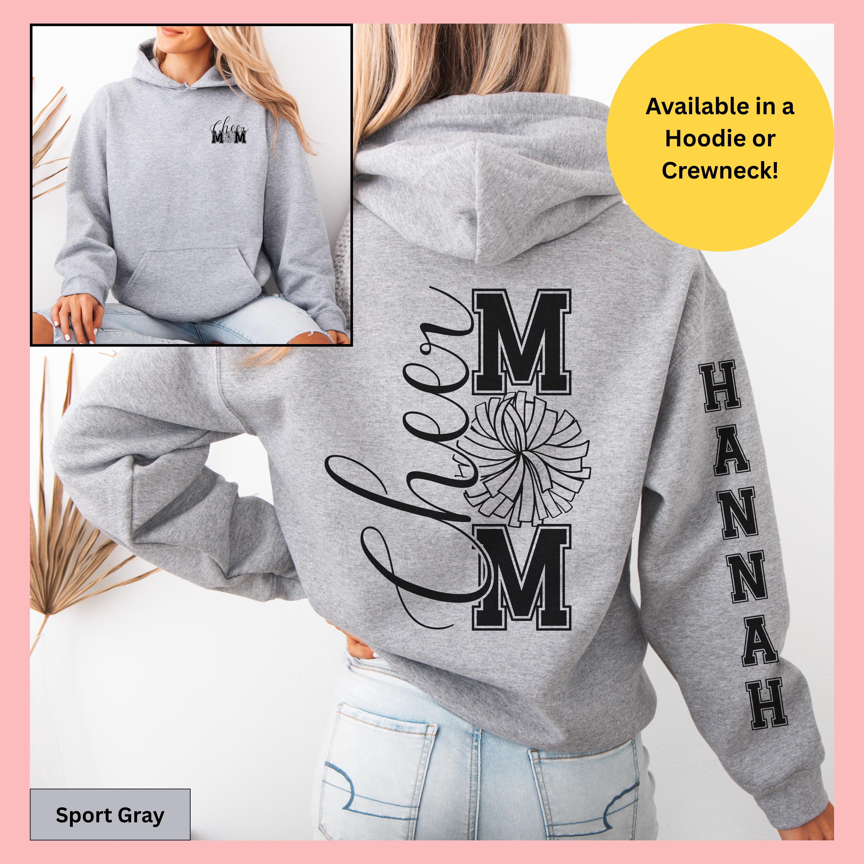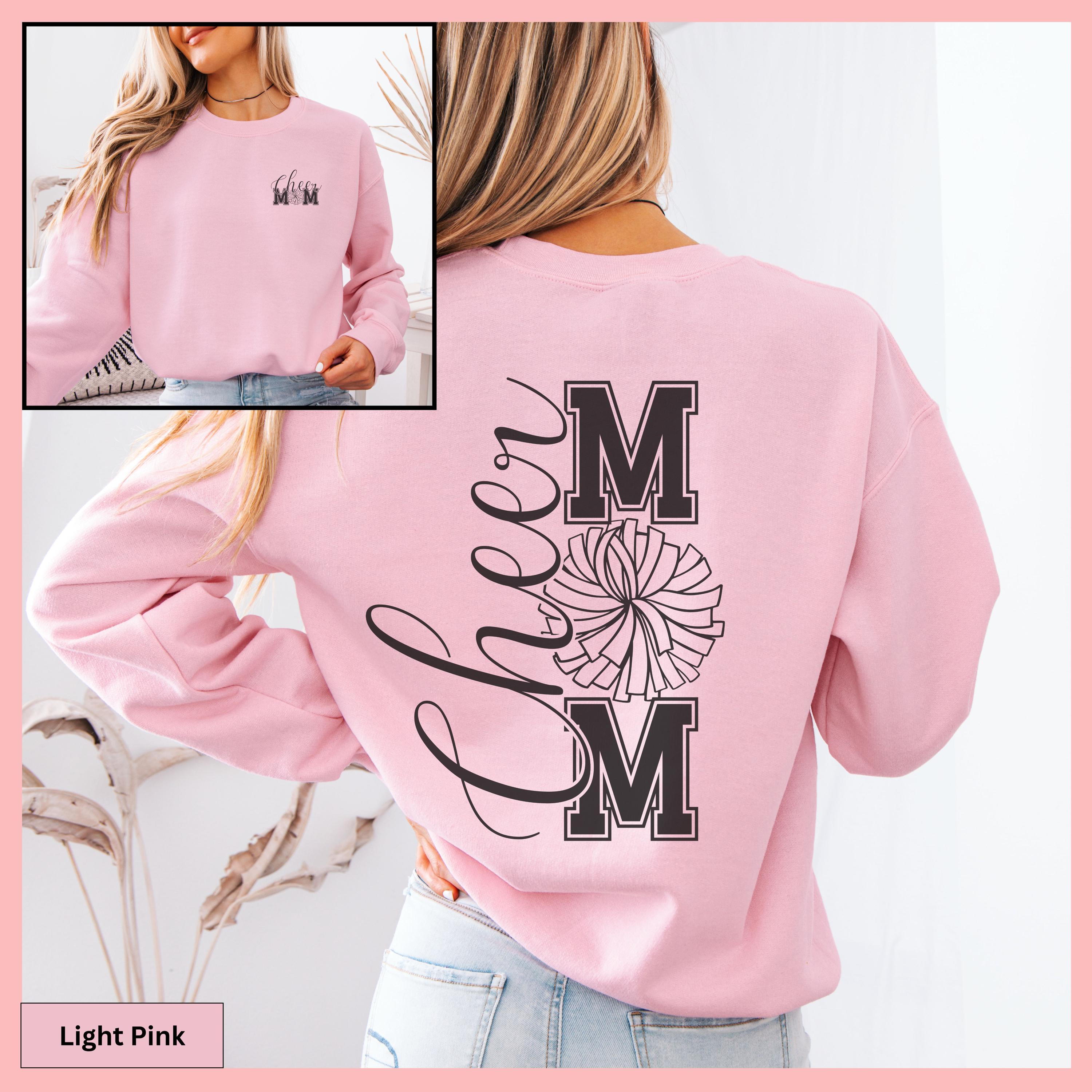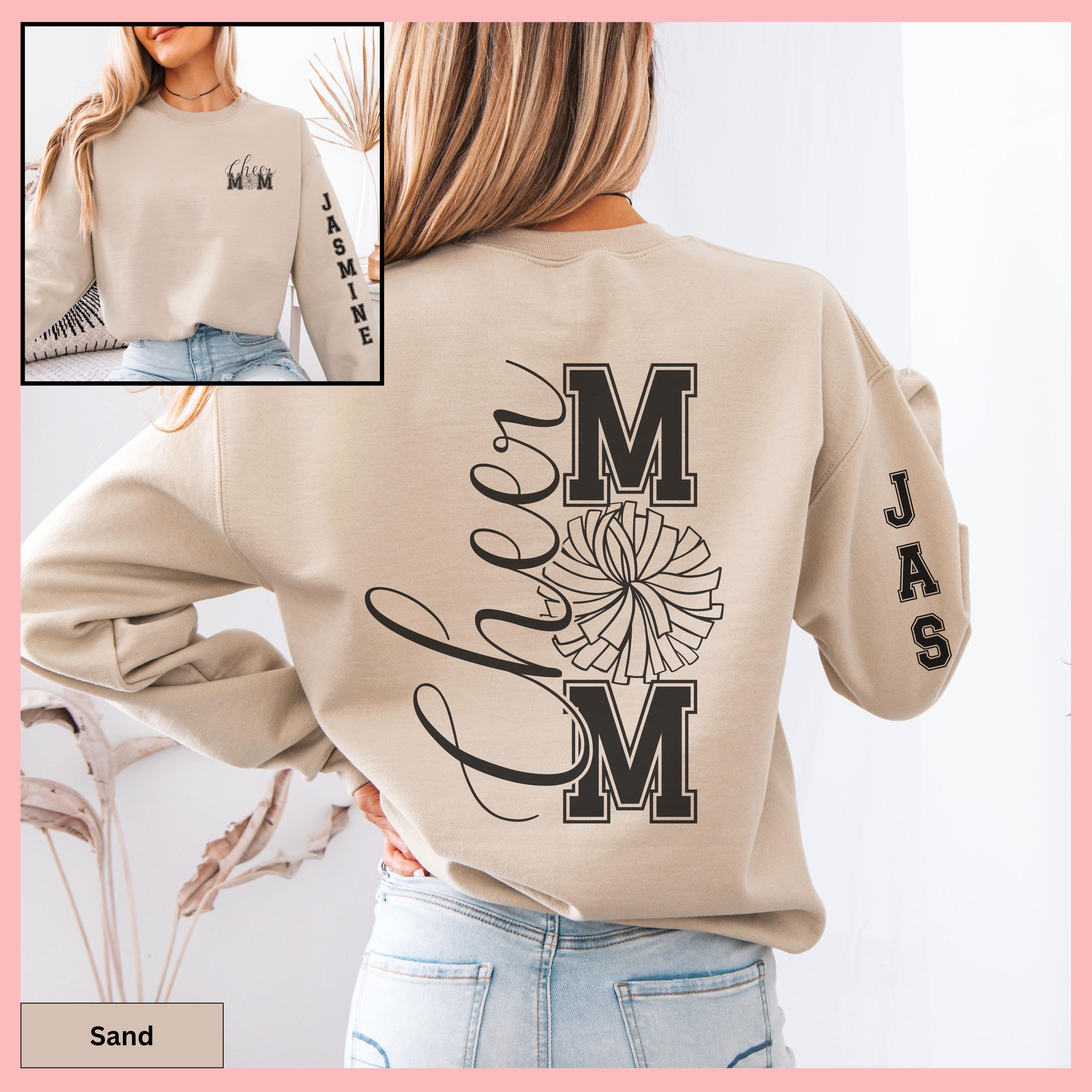Custom Cheer Mom Sweatshirt Pink Cotton Crewneck Top Personalized Tee Cheerleading Parent Apparel Spirit Wear Pompom Graphic Name Pullover