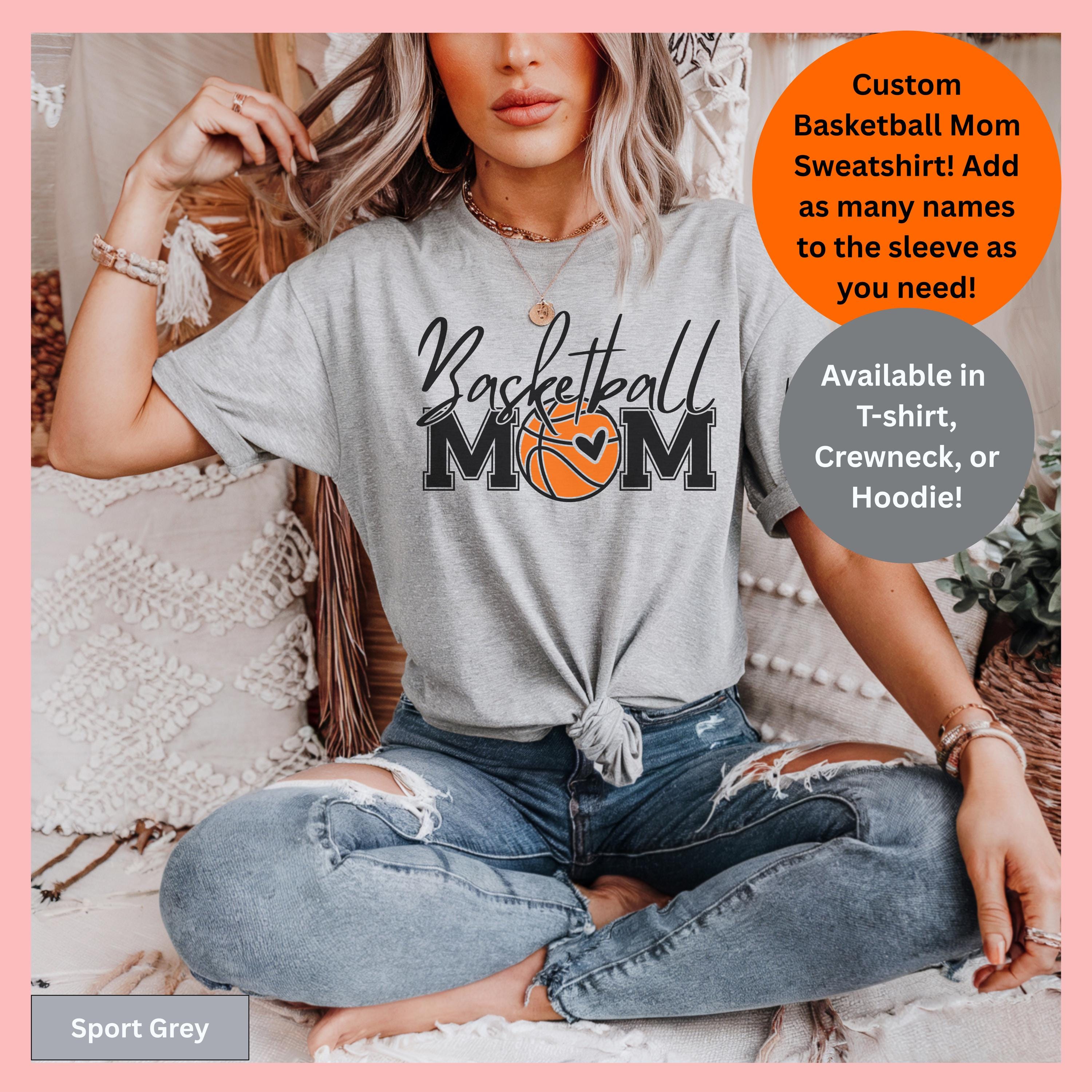 Basketball Mom Shirt Hoodie Custom Sweatshirt Personalized Apparel Sport Heart Design Name Customization Team Parent Game Day High School