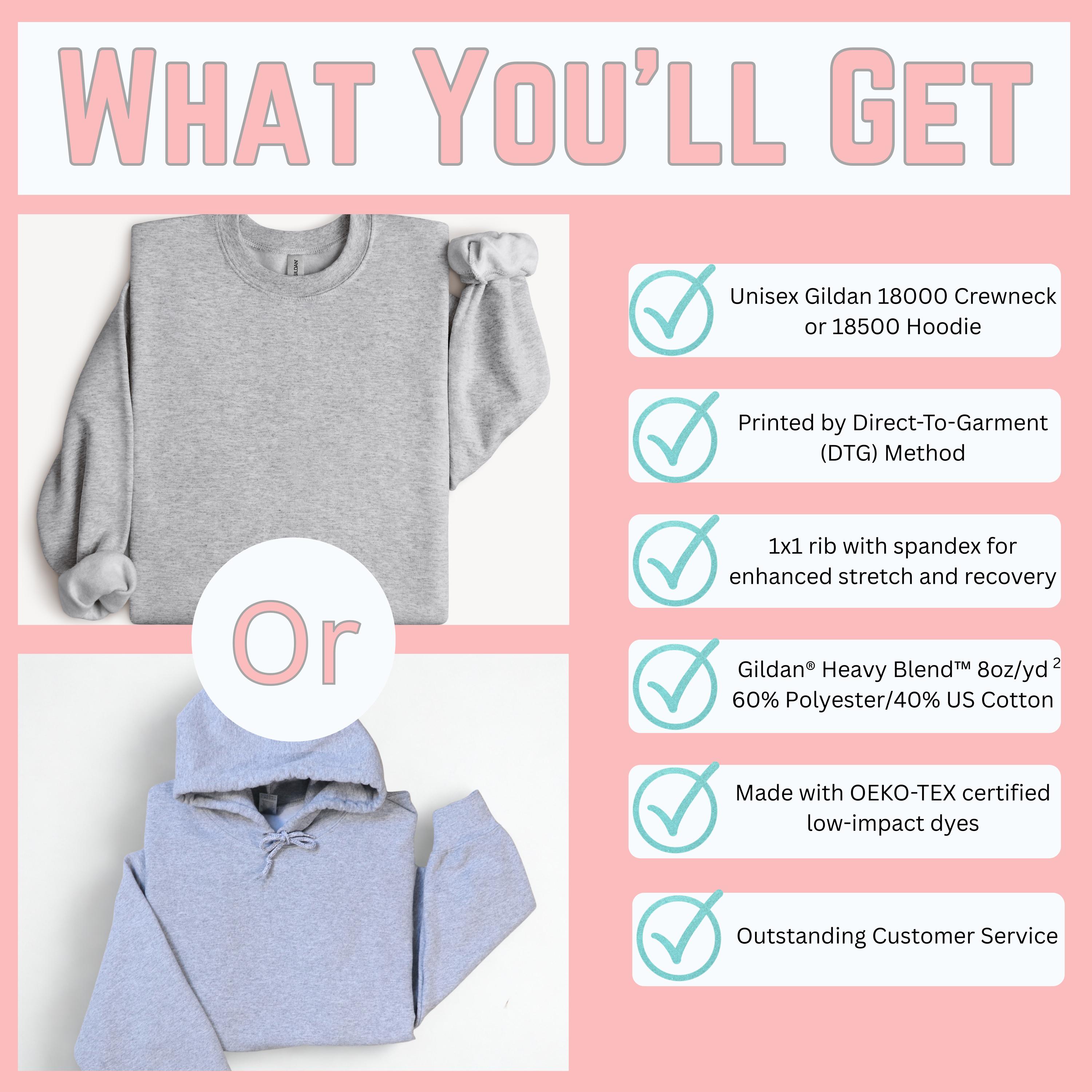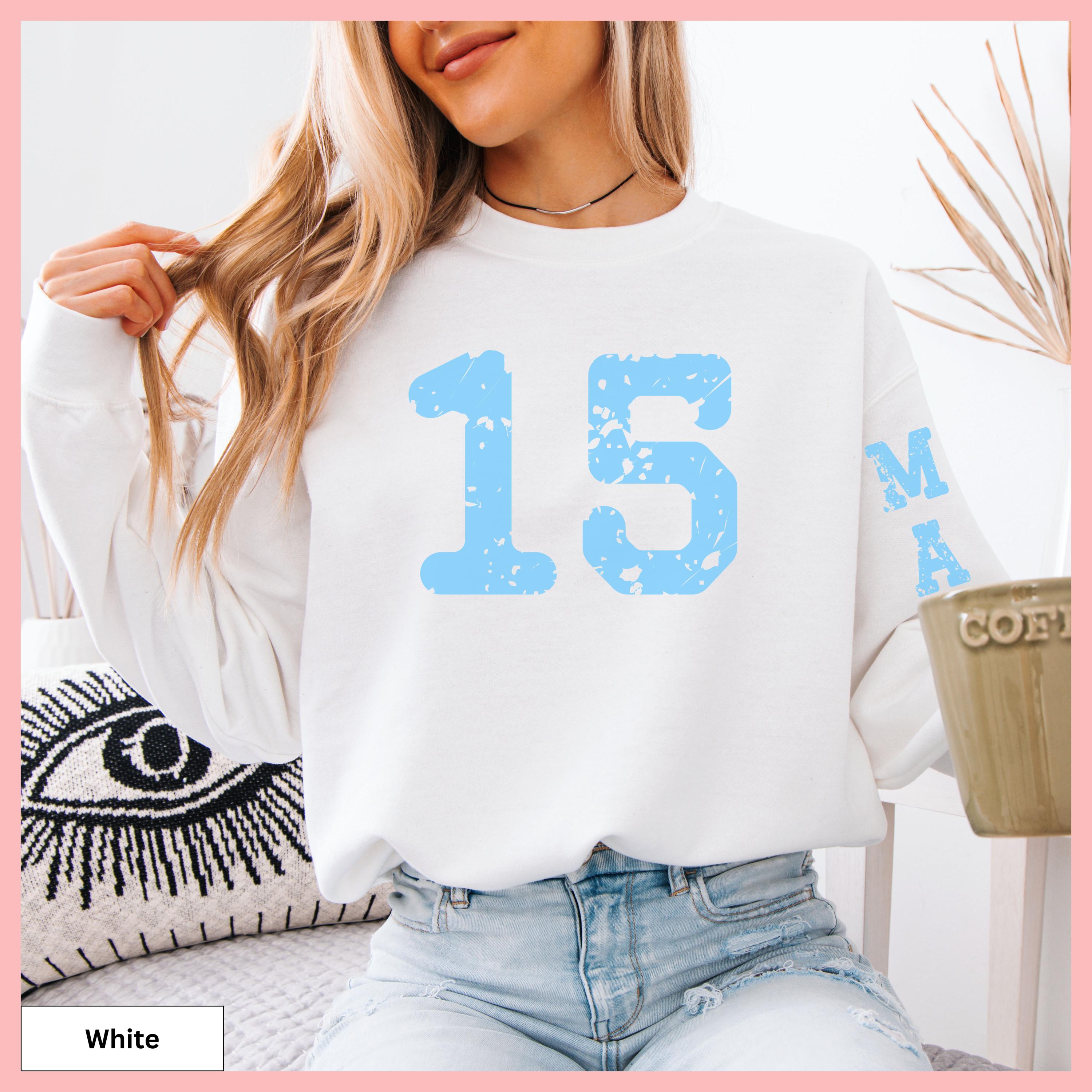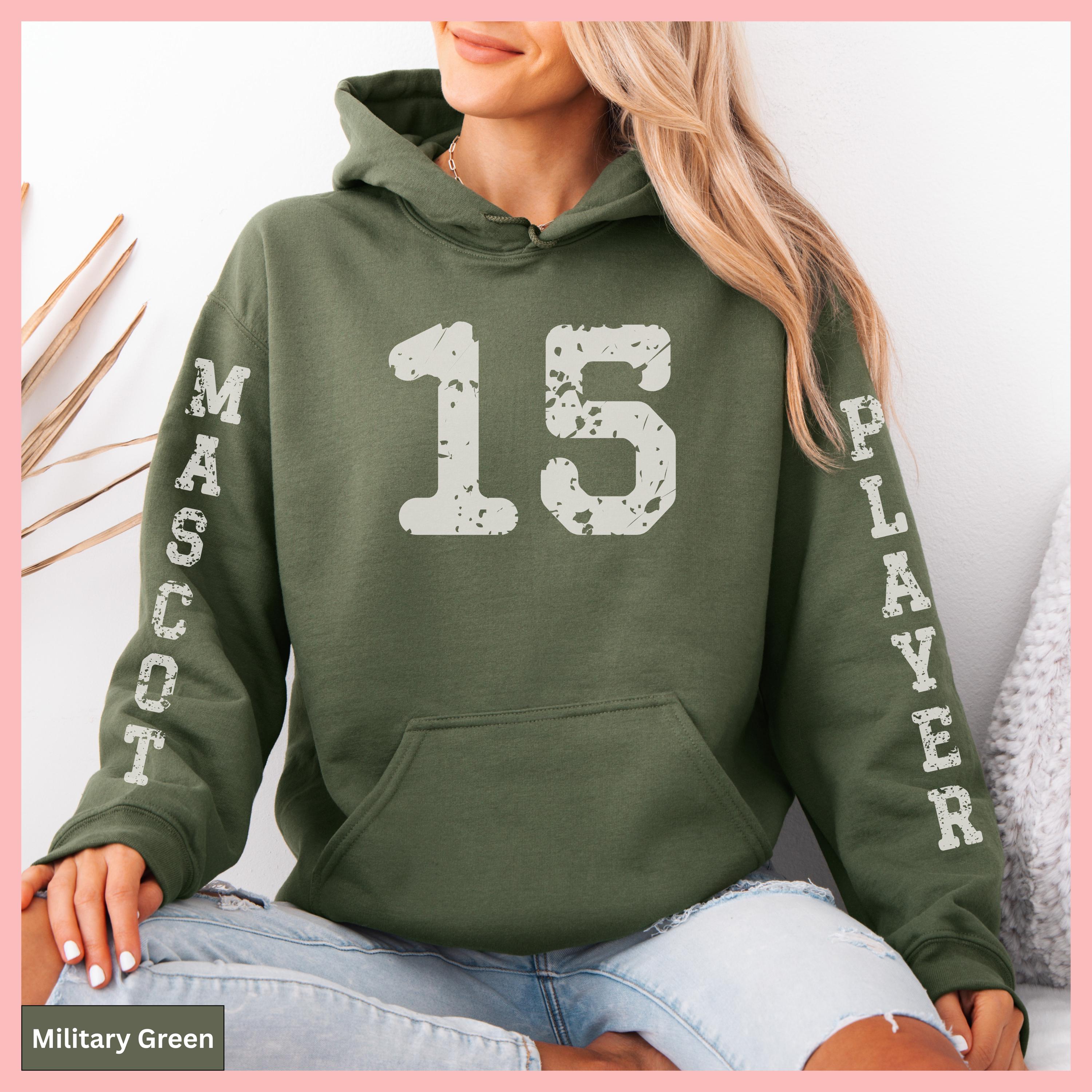 Show your team spirit with this custom team sweatshirt featuring a personalized jersey number and player's name, perfect for creating the ultimate gameday outfit for basketball fans. This sports apparel crewneck combines comfort with personalization, showcasing your team mascot graphic on one sleeve and your player's name on the other, making it an ideal shirt for proud sports moms and fans alike.