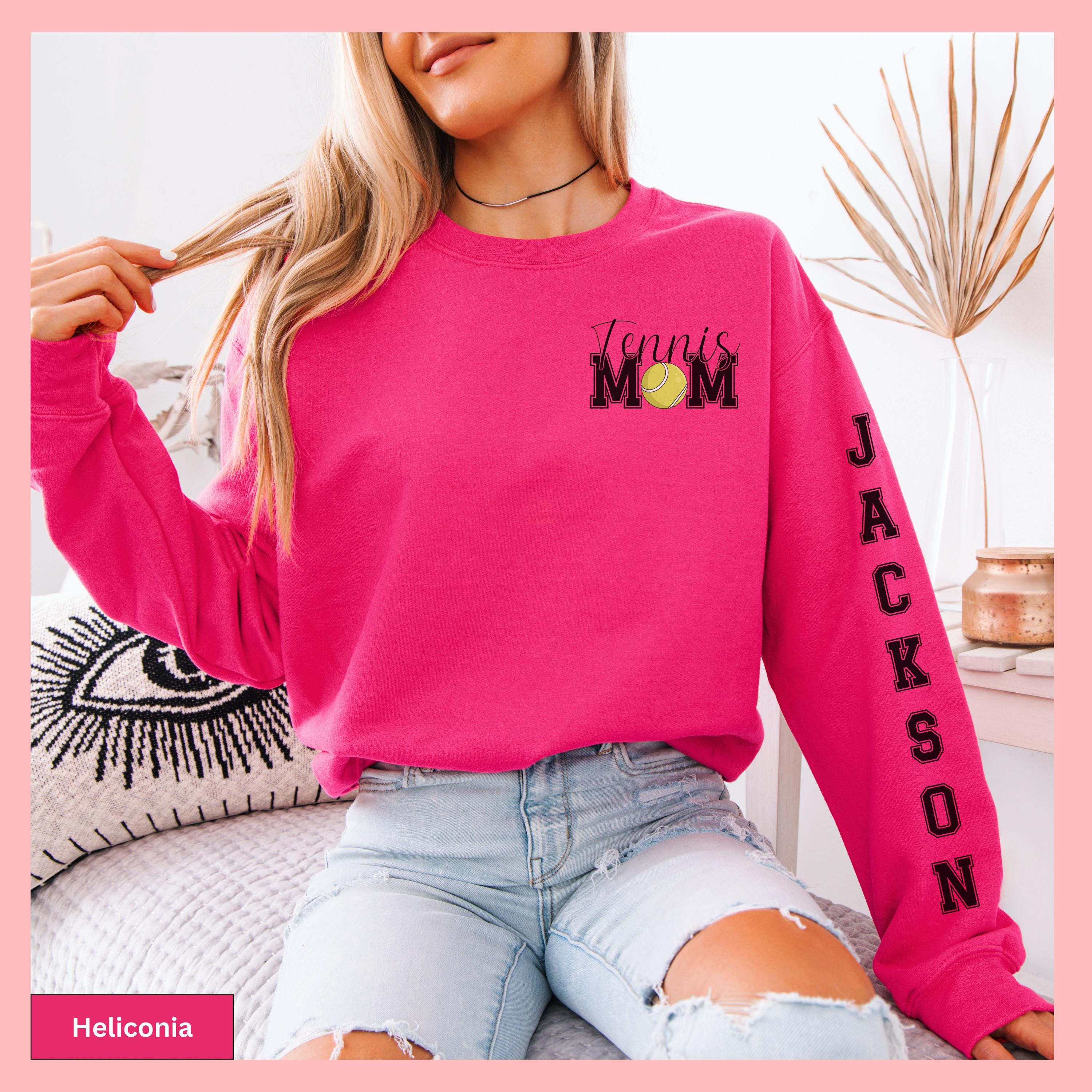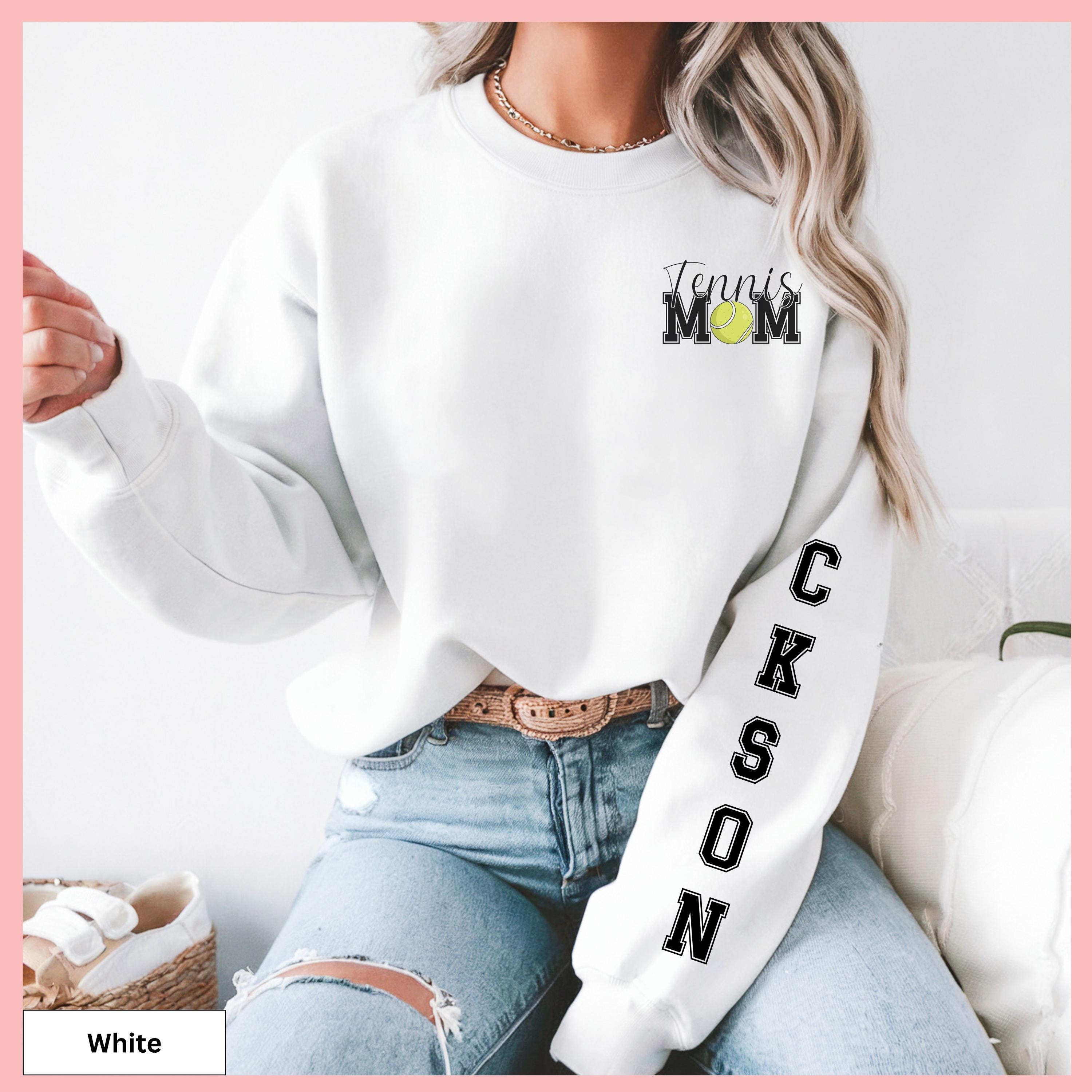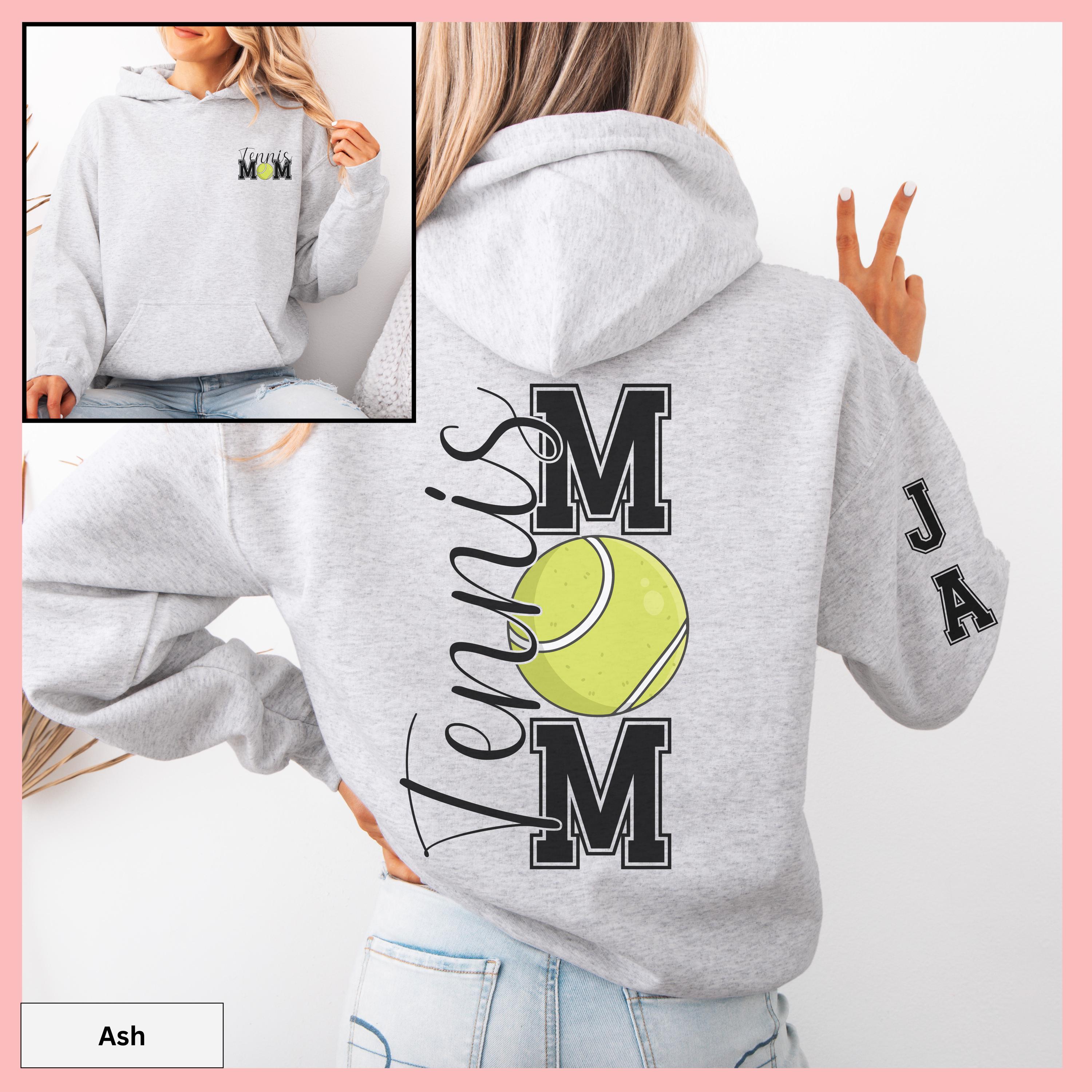 Tennis Mom Hoodie Custom Sleeve Design Personalized Tennis Sweatshirt Sport Gray Cotton Blend Pullover Gameday Gift Shirt Ball Graphic