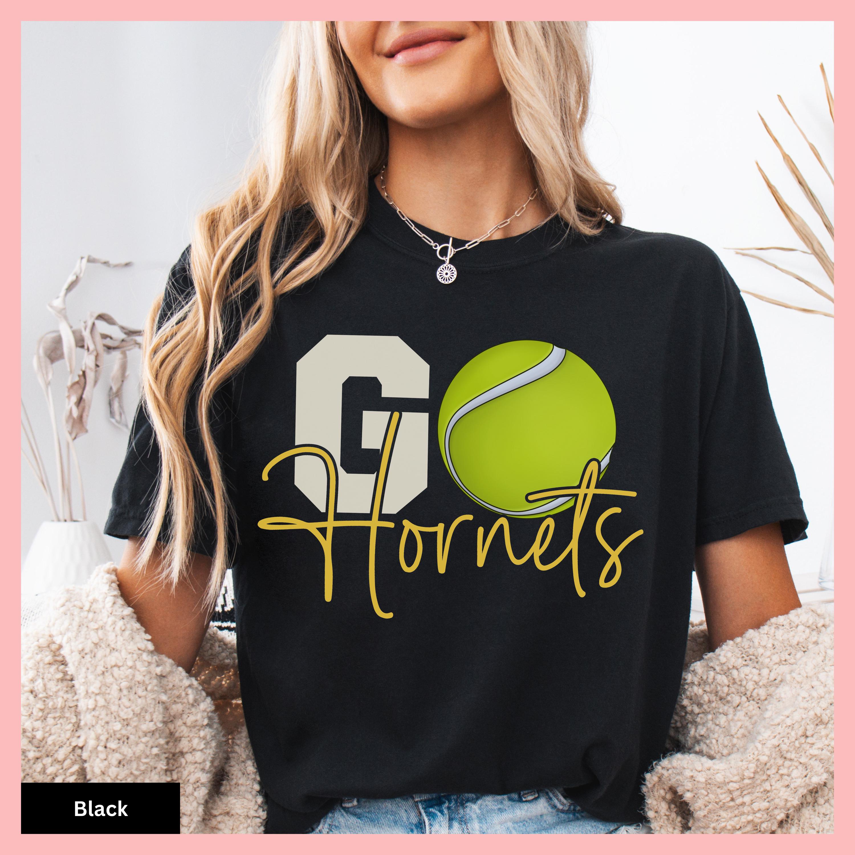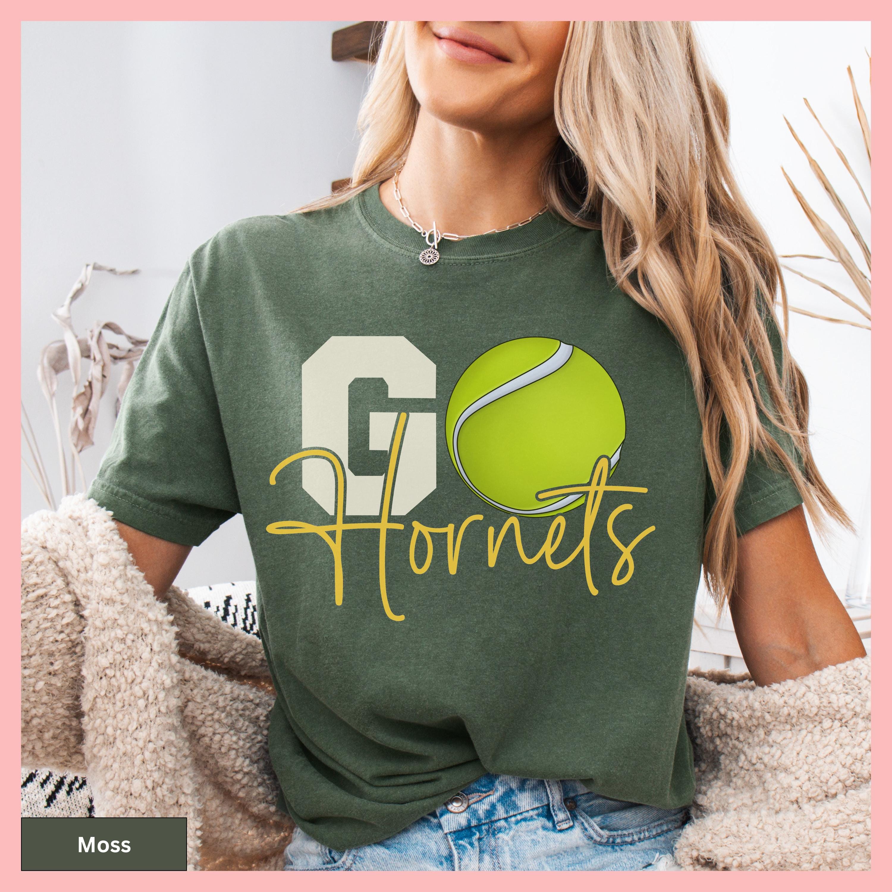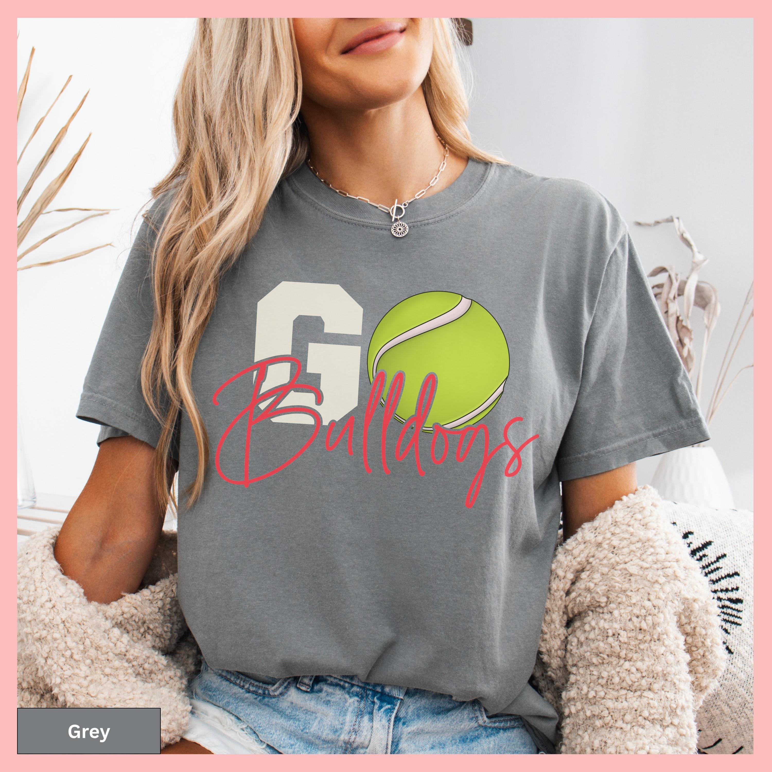Show your tennis pride with this Comfort Colors Tennis Tee, featuring a personalized tennis tee that makes the perfect gameday gift shirt. This tshirt showcases a distinctive tennis ball graphic to cheer on your tennis team and can be customized with any team or mascot name for that special personal touch.