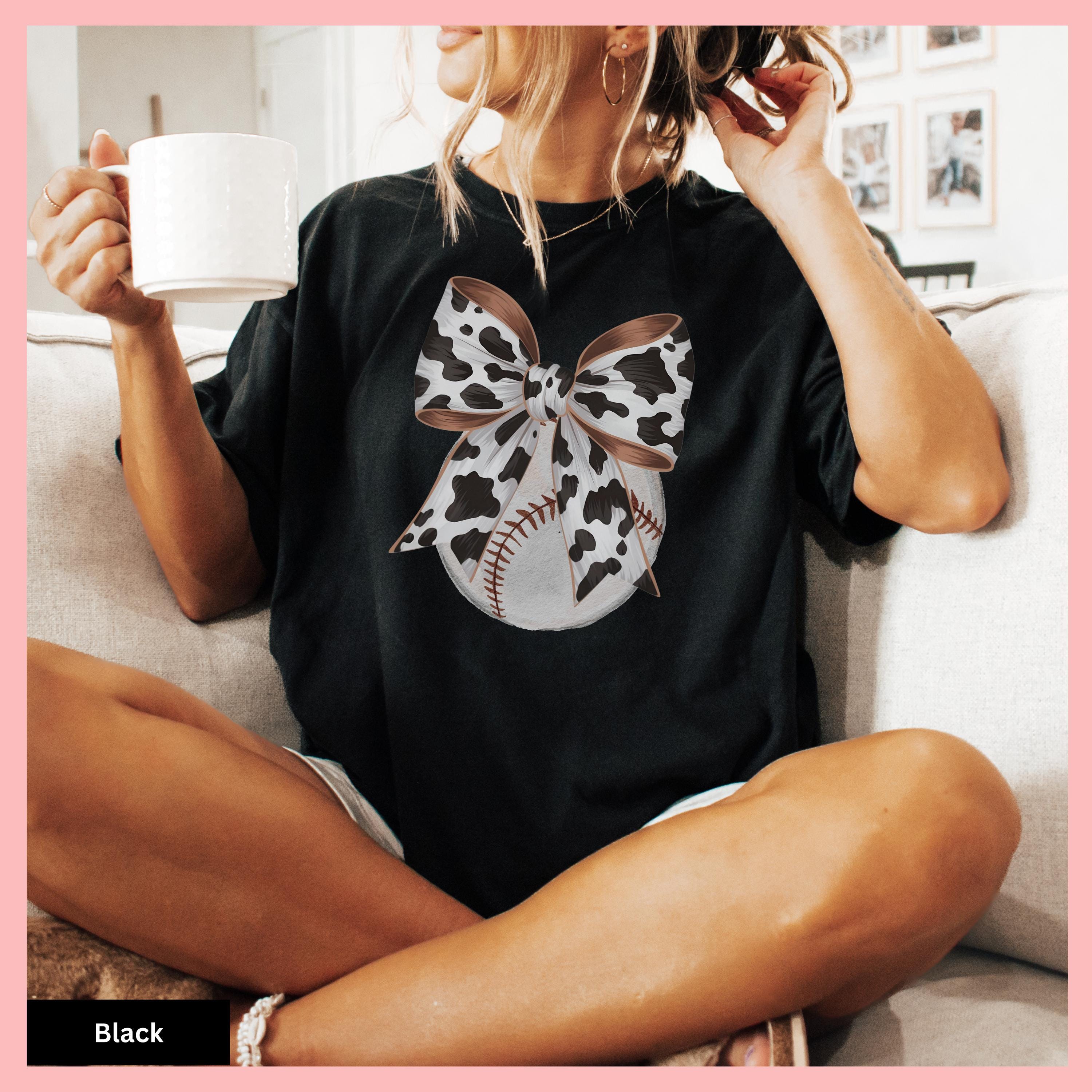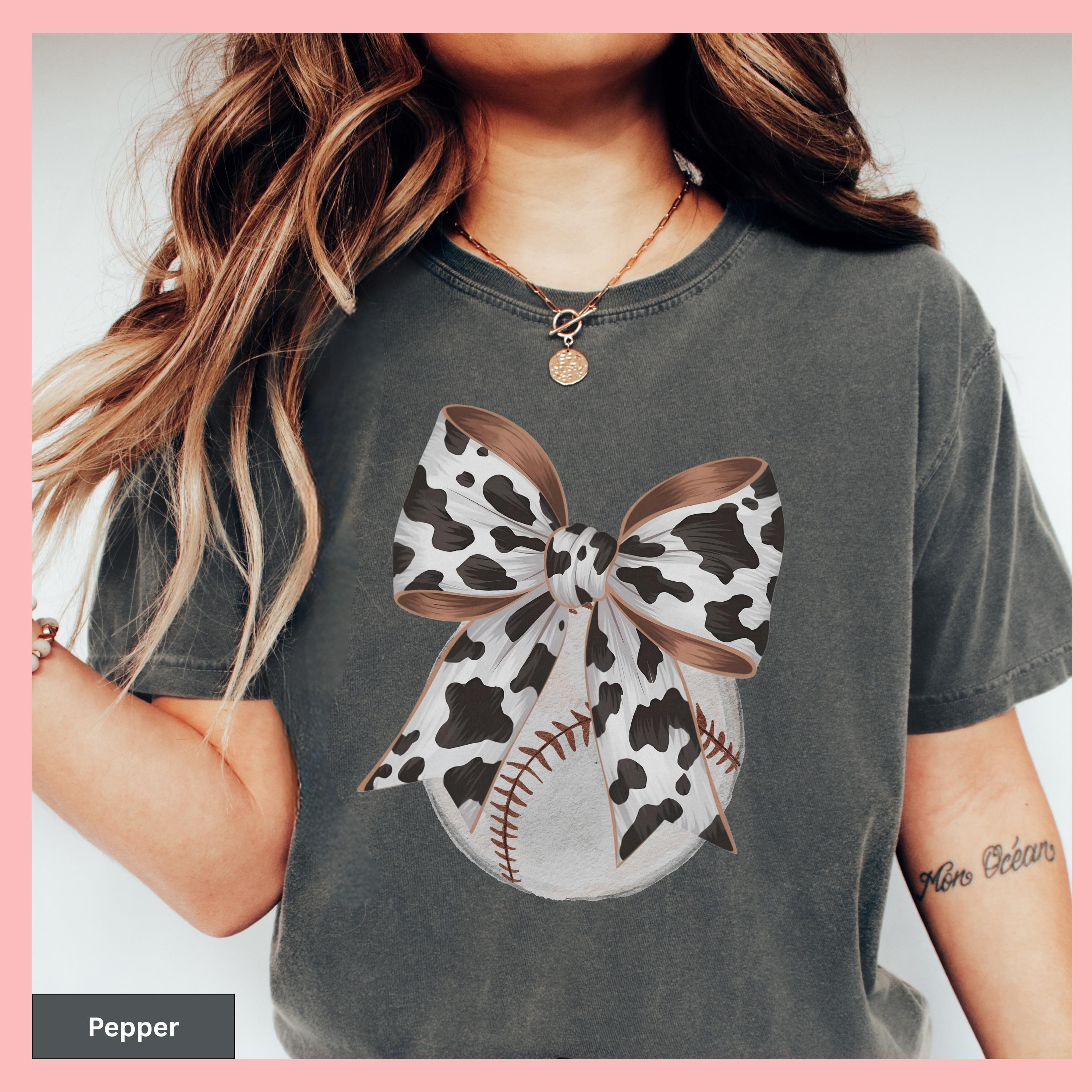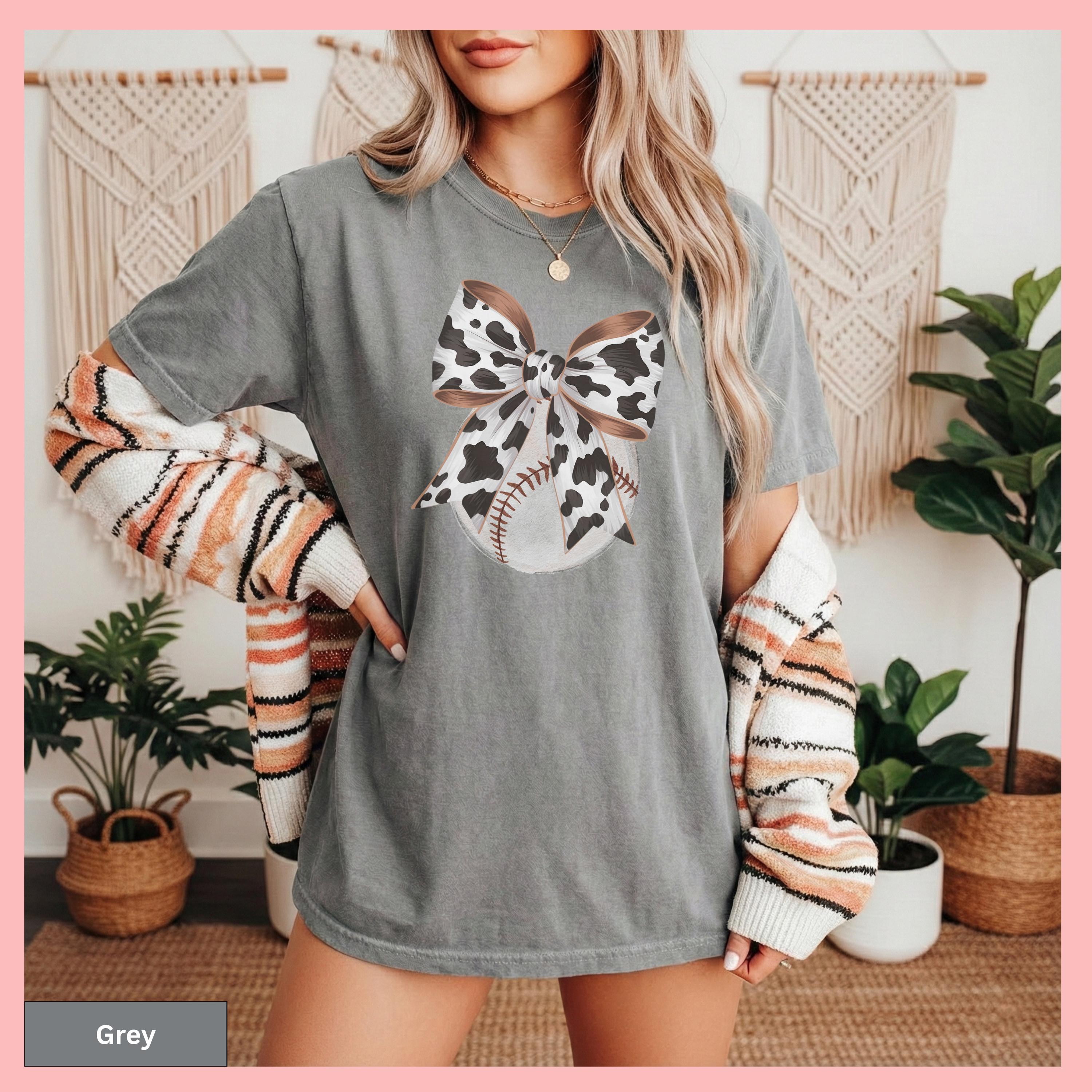 Trendy Baseball Sports Mom Shirt and Baseball Sporty Shirt are perfect for cheering on your team in style on game day. This Game Day Sports Mom Trendy Mom Gifts TBall Mom Gift Shirt makes a thoughtful and fun present for any proud sports mom. Show your love for America's favorite pastime with this unique baseball cow tshirt featuring a western style design that perfectly captures country charm. This comfort colors brown cotton top offers casual versatility as an unisex piece with a distinctive bow design, making it the ideal team apparel for game day events or as a thoughtful fan gift.