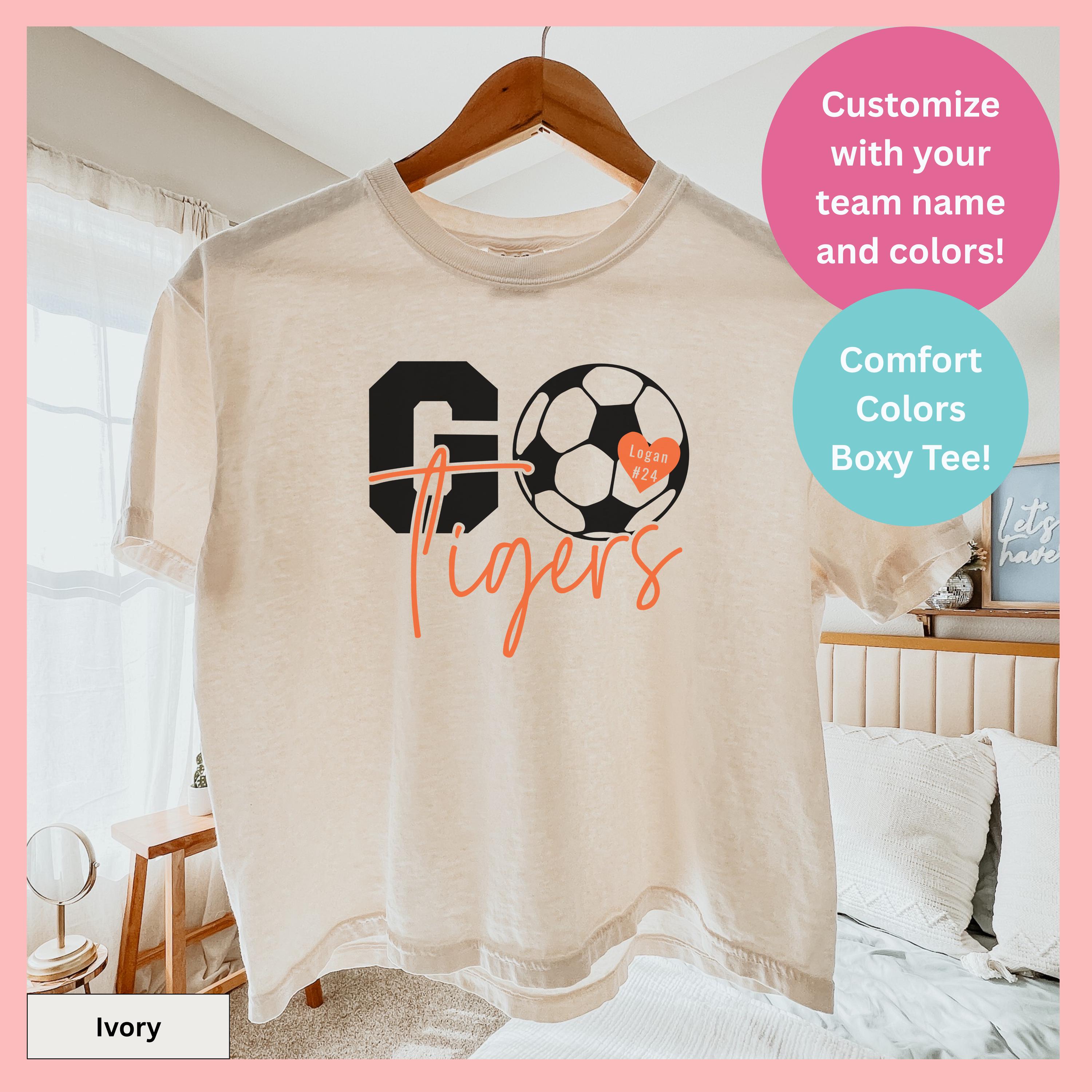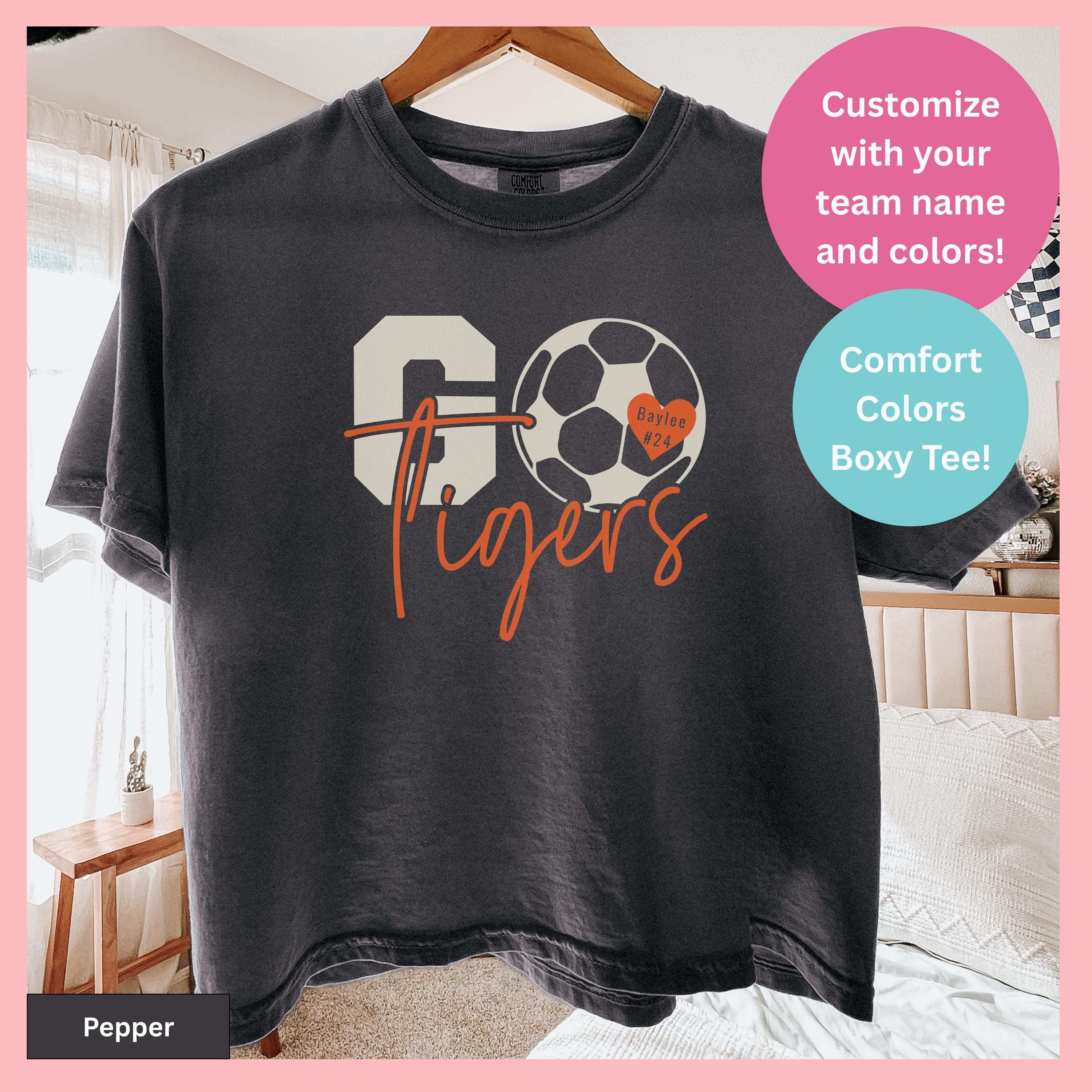 Customizable soccer t-shirt printed on high-quality Comfort Colors brand fabric